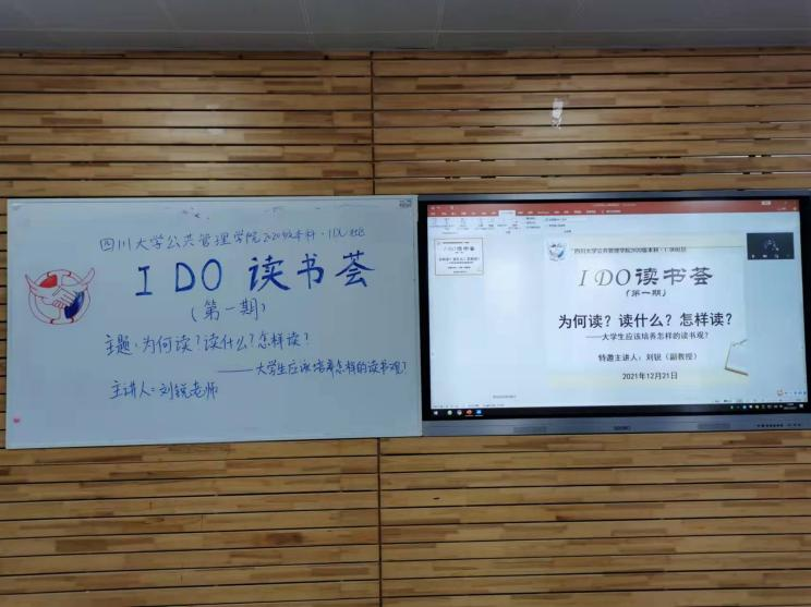 2021年12月21日14:30,新葡的京集团88142020级本科第一期“IDO读书荟”在江安校区基础教学楼D203教室成功举办。新葡的京集团8814行政管理系刘锐副教授作为特邀嘉宾主讲了本次读书荟,读书荟由2020级本科辅导员苟欢老师主持,2020级本科员工各专业同学通过线下线上的方式参加了本次读书荟。