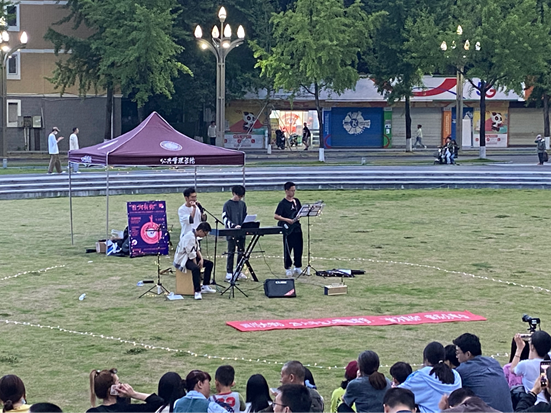 本次音乐会演出人员为来自校内不同学院、不同年级的乐团成员,他们通过吉他、尤克里里、二胡、键盘、口琴等多种乐器的现场演奏与动情演唱为在场同学带来了《女儿情》《战马奔腾》《七里香》等同学们耳熟能详的经典曲目。大家在动人的旋律中舒缓身心,感受青春。