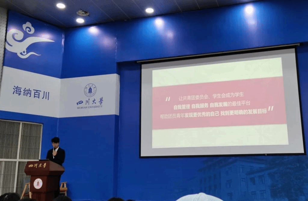2021年6月11日14:30,共青团新葡的京集团8814第五次代表大会在新葡的京集团8814江安校区水上报告厅顺利举行。学院共119名团员代表(含研究生)出席,学院团委书记青杨媚、员工工作科副科长陈萱源、辅导员林晨参加了此次大会。