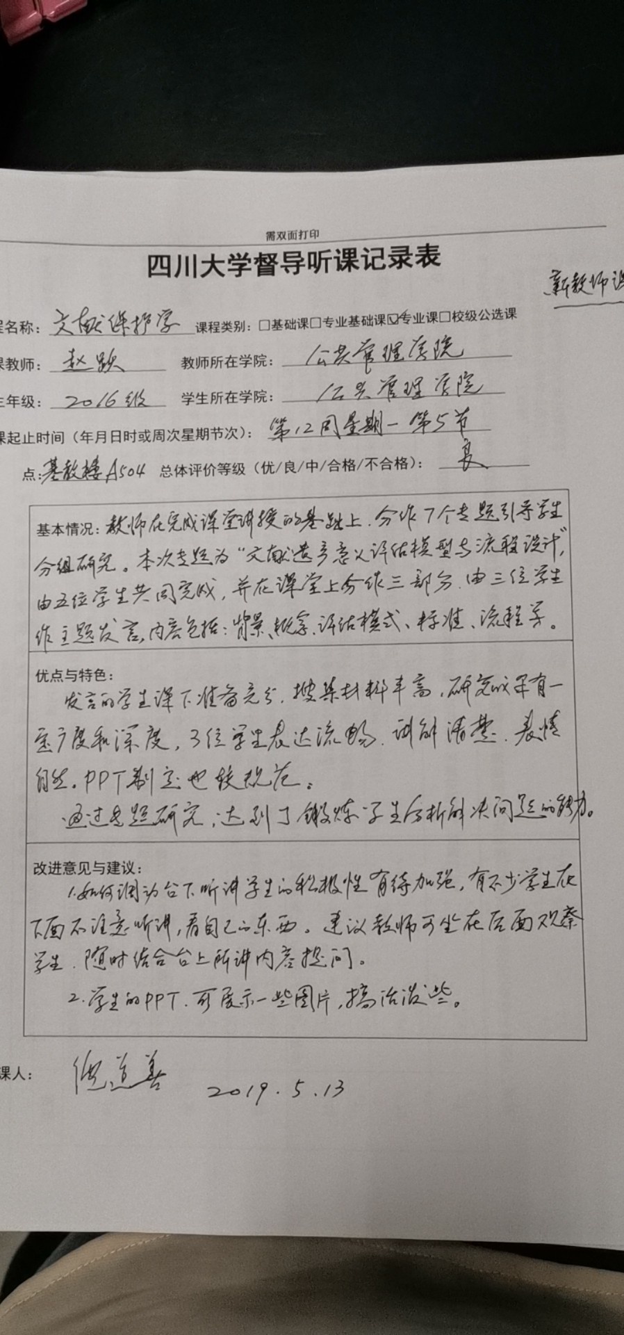 为实施教学全过程的督导与监控,把好教学(课堂理论教学、实践教学、实验教学)全过程和各个环节的质量关,2019年春季学期,新葡的京集团8814本科教学督导组进一步发挥督导工作职责,深入课堂听课,每学期听课不少于8次,每次至少2学时。